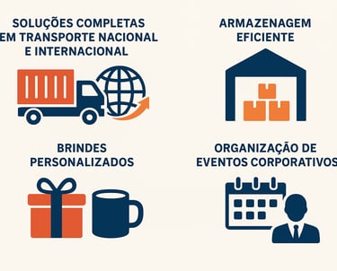 Transporte, armazenagem e brindes personalizados para eventos corporativos de sucesso.